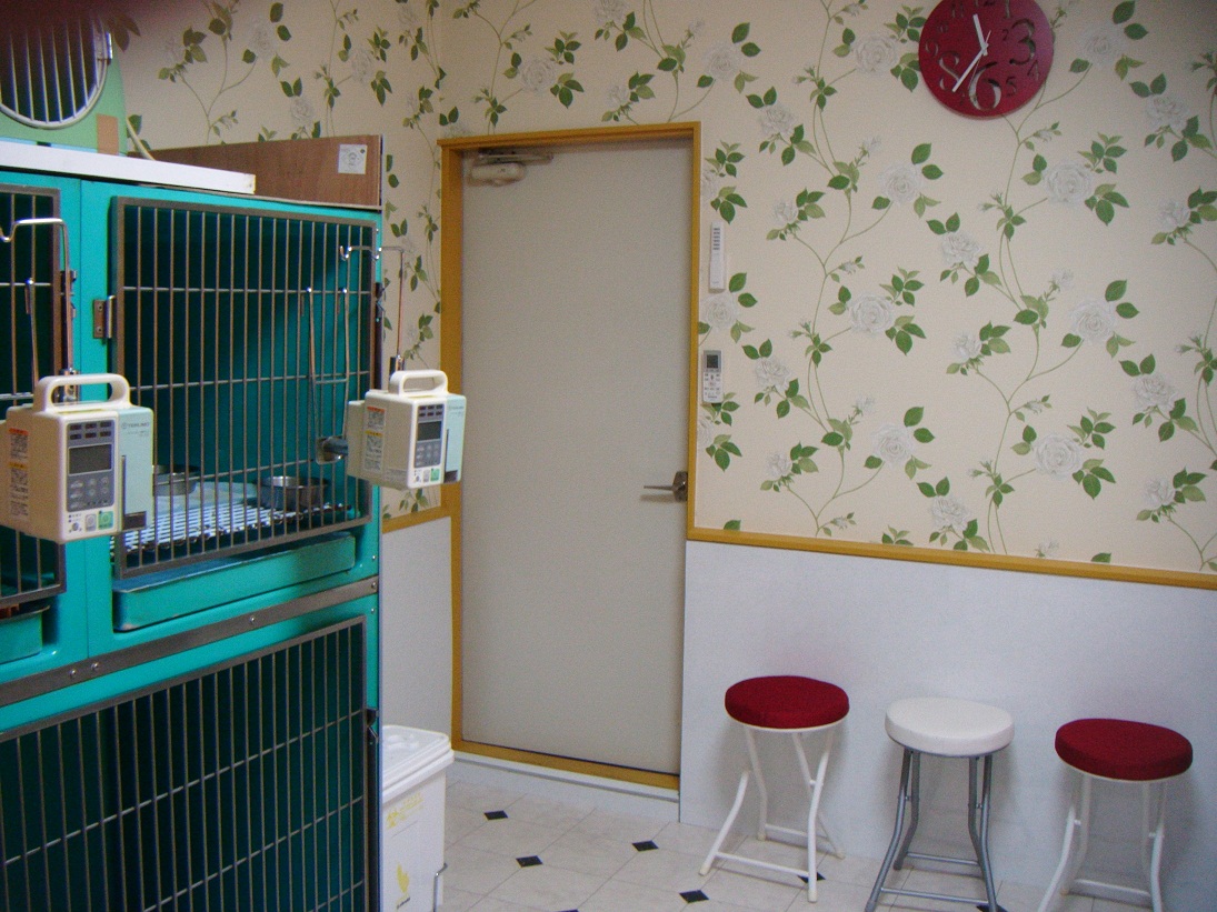 犬専用入院室(11ケージ)猫専用入院室(10ケージ)及びICU(酸素吸入 1ケージ)
